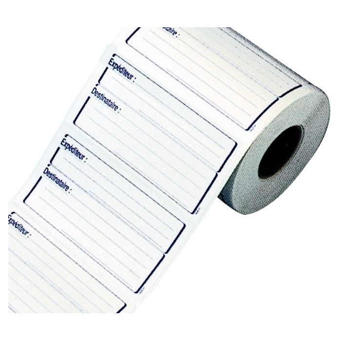 Rouleau de 500 étiquettes adhésives "expéditeur / destinataire" 125x65mm