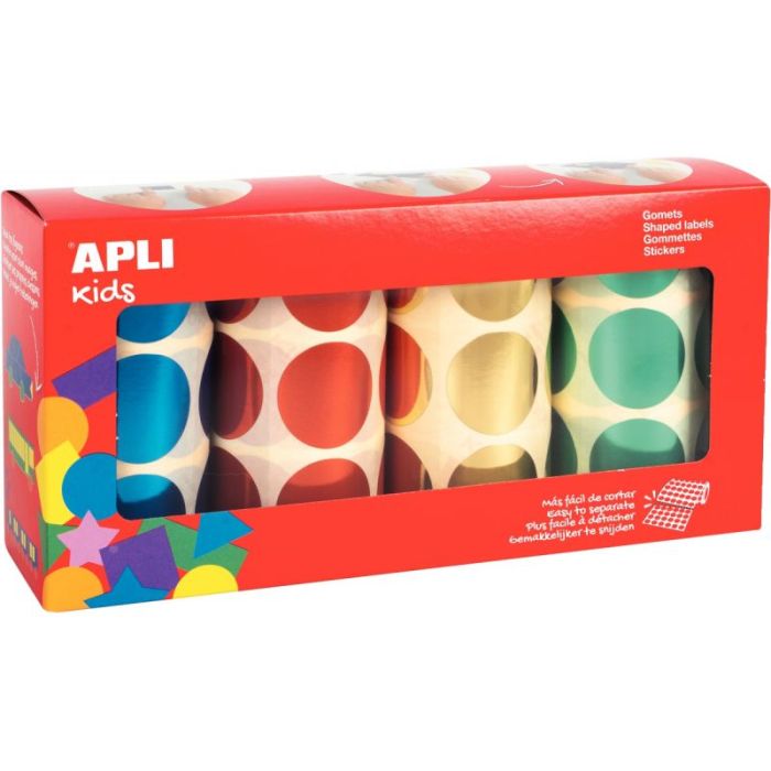 Lot de 4 rouleaux de gommettes rondes XL Ø33mm métal assorties