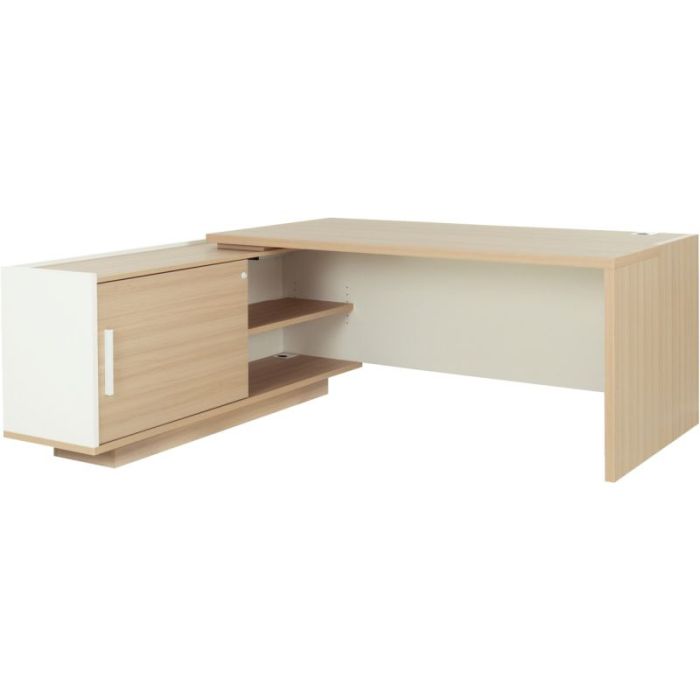 Bureau retour gauche Brabant L180/198xH75xP90/180cm avec rangements chêne structuré/blanc