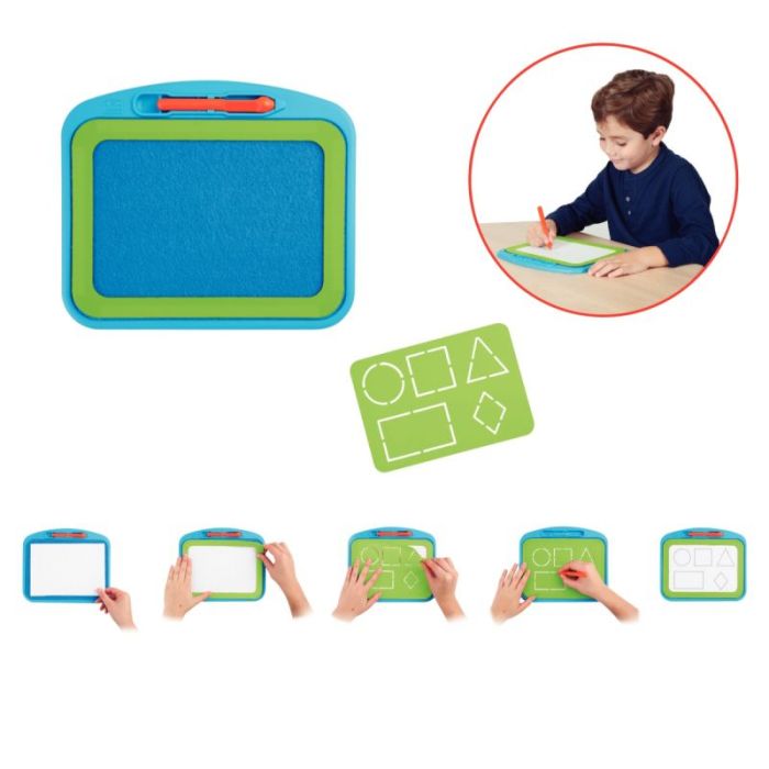 Contenu de la boîte : 4 supports PVC (25x21 cm), un gabarit avec un dessous feutré et un crayon avec pointe