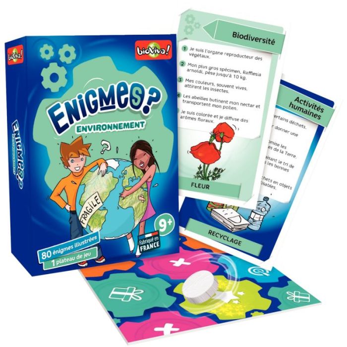 Contenu : 40 cartes énigmes illustrées recto/verso, 1 plateau de jeu en carton épais 21x15cm, 1 jeton en bois, et une règle du jeu