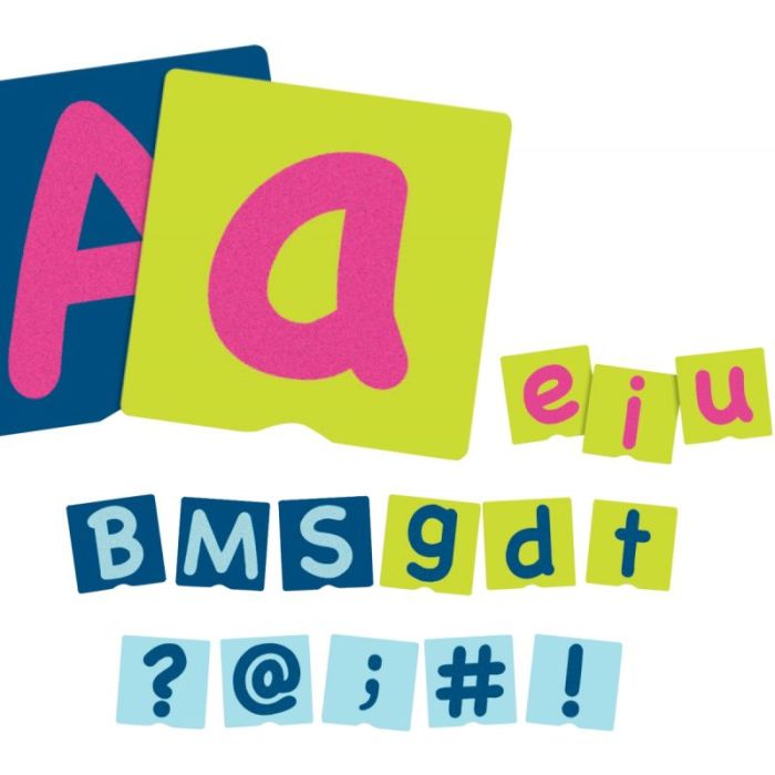 Contenu : 34 fiches recto/verso 9x9cm représentant les lettres de l’alphabet en majuscule et minuscule, et les signes de ponctuation