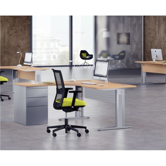 Plan compact 90° Onyx retour gauche L..180 x P.120 et 60 cm plateau chêne clair/piètement alu