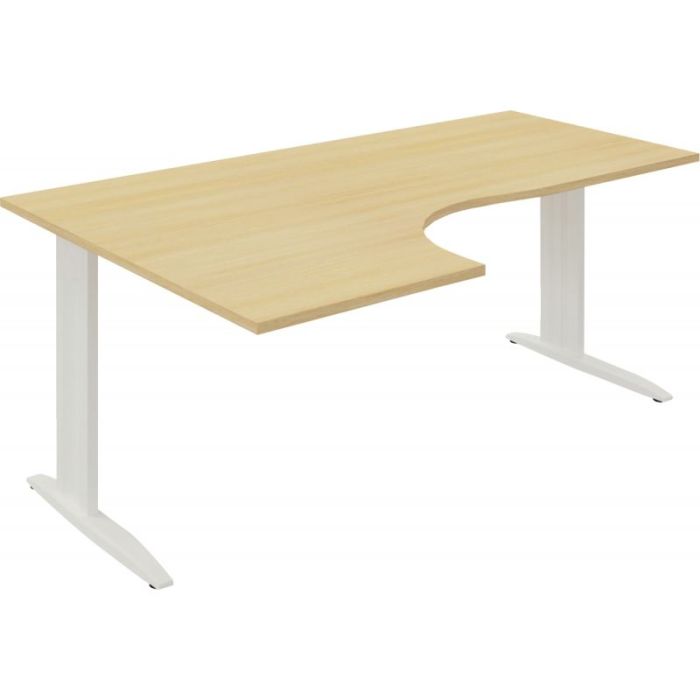 Plan compact 90° Onyx retour gauche L..180 x P.120 et 60 cm plateau chêne clair/piètement blanc