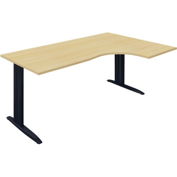 Plan compact 90° Onyx retour droit L..180 x P.120 et 60 cm plateau chêne clair/piètement anthracite