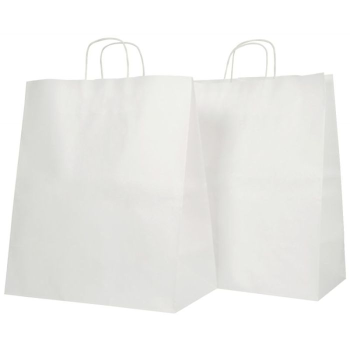 Carton de 200 sacs kraft blanc 24+11x30cm poignées torsadées