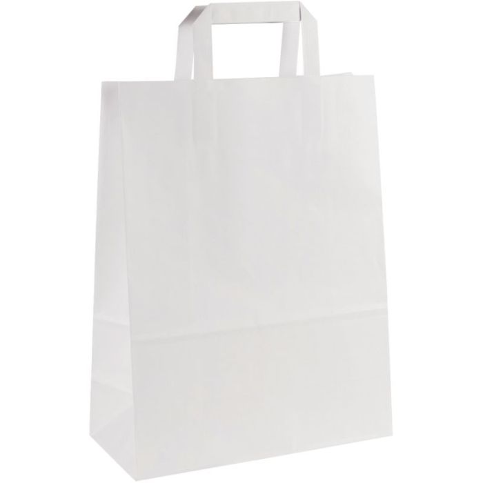 Carton de 200 sacs kraft blanc 26+12x34cm poignées plates