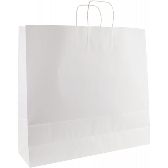Carton de 100 sacs kraft blanc 40+16x45cm poignées torsadées