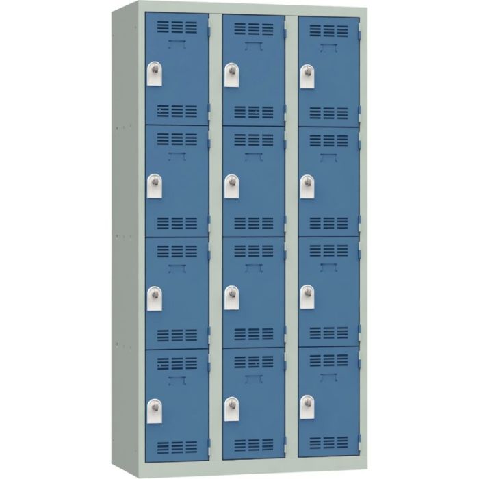 Vestiaire d'atelier 3 colonnes 12 cases industrie propre L90cm portes bleu/corps gris