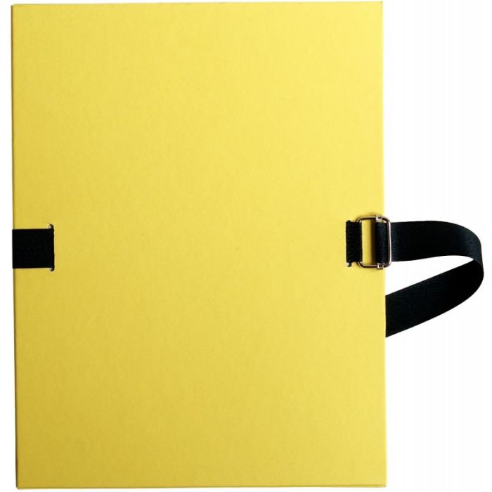 Plats et dos en carton recouvert de papier recyclé, sangle noire, boucle métal