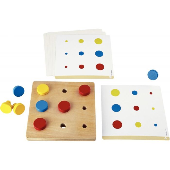 Jeu de manipulation pour visser, dévisser et s’exercer à reproduire les 12 modèles, en autonomie ! Dès 3 ans