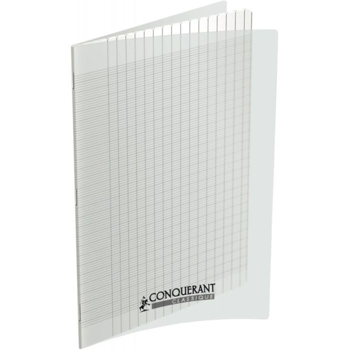 Piqûre 96 pages 24x32 cm, seyès 2,5 mm agrandi, papier 90g, couverture en polypropylène incolore