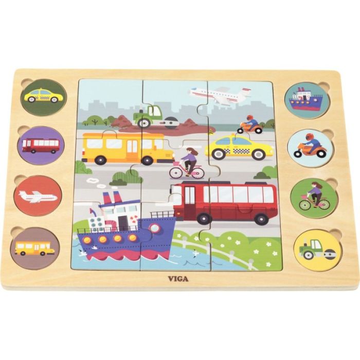 Description détaillée / Puzzle en bois cherche et trouve, les transports
