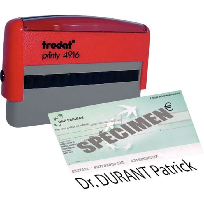 Timbre à encrage automatique, livré avec plaque neutre pour personnalisation (texte, logo, cadre ou tableau) sur demande