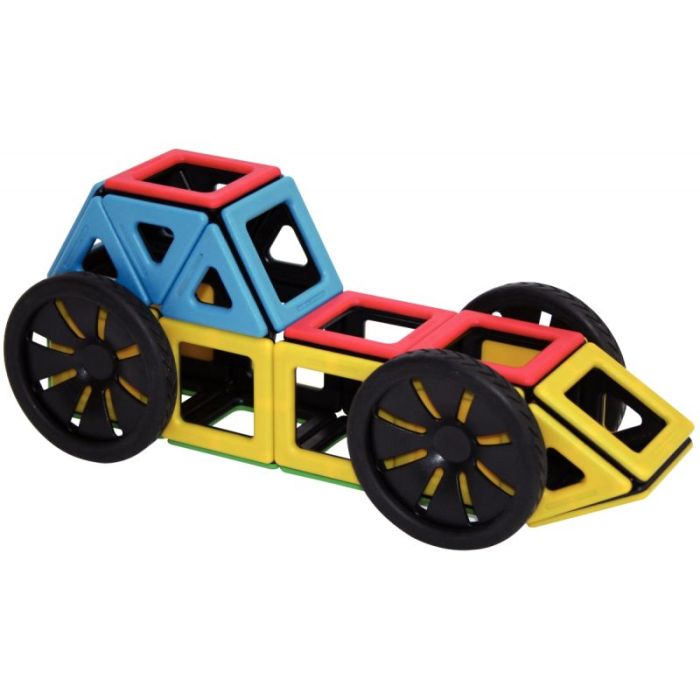 Selon l'imagination des enfants Faciles à assembler par les petites mains Permet une première approche des constructions en 2D et 3D Pour jouer à l'intérieur ou à l'extérieur Diamètre des roues : 9 cmEpaisseur d'une pièce : 2 cm Livré avec une notice de 16 véhicules différents A partir de 3 ans