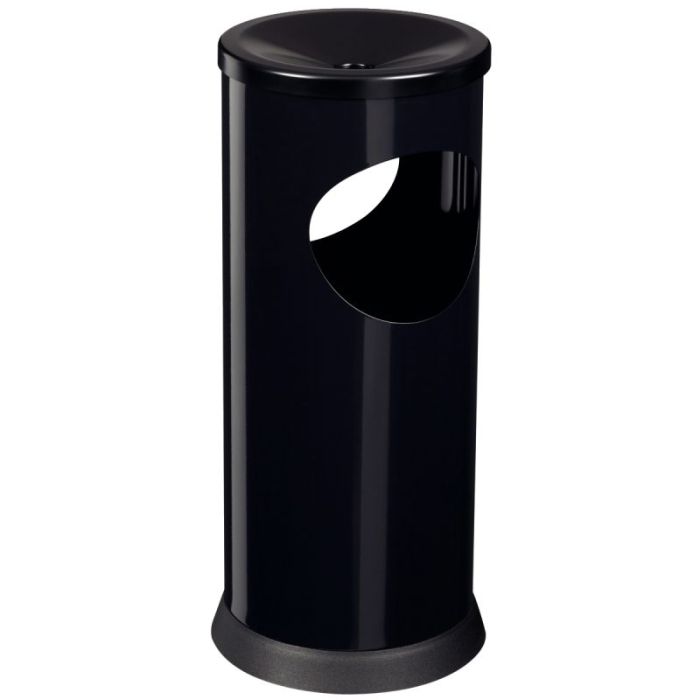 Corps en acier poudré époxy Tête amovible poudrée polyester haute résistance Socle plastique : protège des produits d'entretien et évite les rayures sur le sol Tête étouffoir : permet une parfaite extinction des cigarettes, réceptacle de cendres en acier galvanisé et tête liée au réceptacle par une chaînette Deux ouvertures : facilite la collecte des déchets Bac à cendres en acier galvanisé 1,27 L Capacité corbeille : 17,5 L Hauteur de 67 cmDiamètre de 28 cm