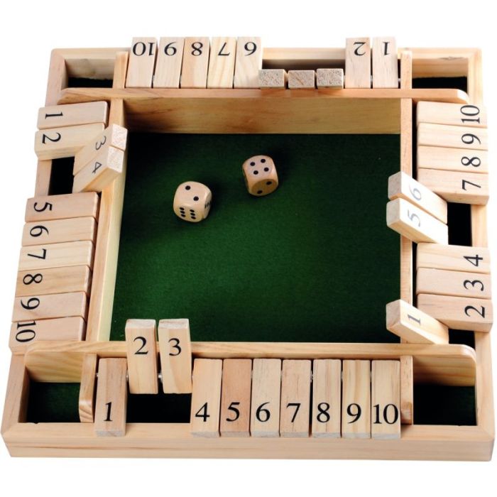 Contenu de la boîte : Un support en bois très qualitatif (29x29cm) avec 4 réglettes de jetons de 1 à 10 et au centre une piste, 2 dés en bois