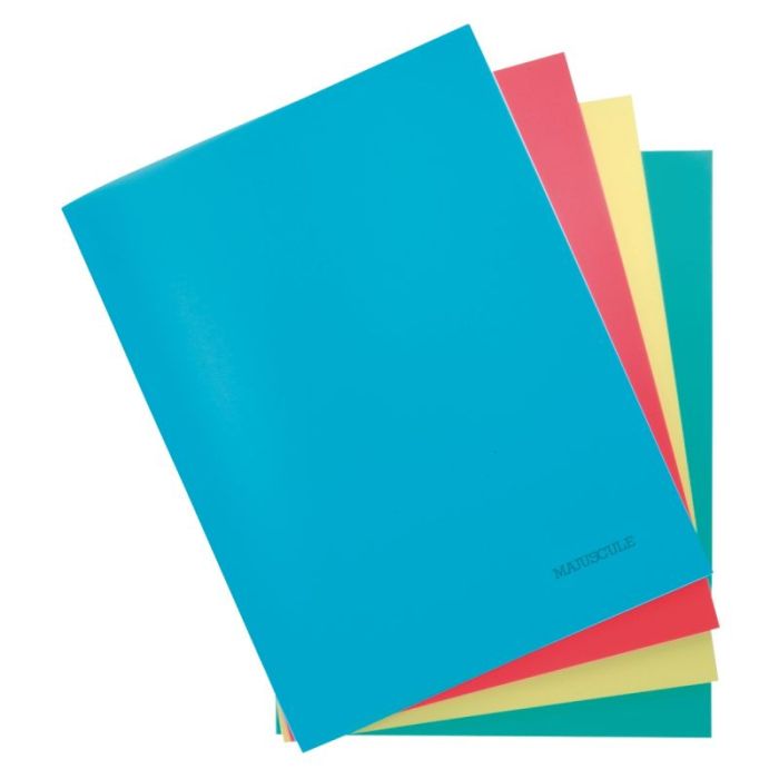 Piqure 96 pages couverture polypropylène 24x32cm uni 90g couverture assortis : rouge, bleu, vert, jaune