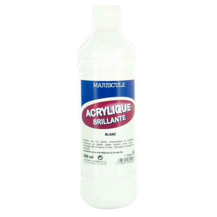 Description détaillée / Flacon de 500 ml de peinture acrylique brillante MAJUSCULE blanc