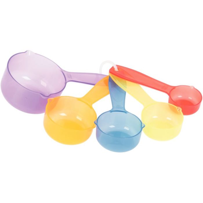 Contenu : 5 cuillères translucides de 5 coloris différents contenant les volumes suivants : 236ml, 118ml, 79ml, 59ml et 29