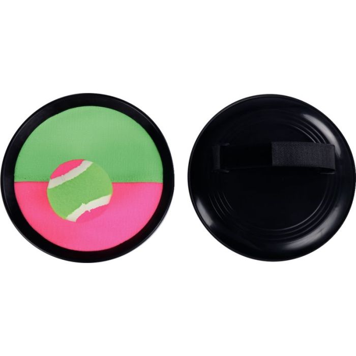 La balle s’accroche aux raquettes grâce au revêtement auto-agrippant, les enfants coincent leur main sur le dos de la raquette pour une bonne prise en main.