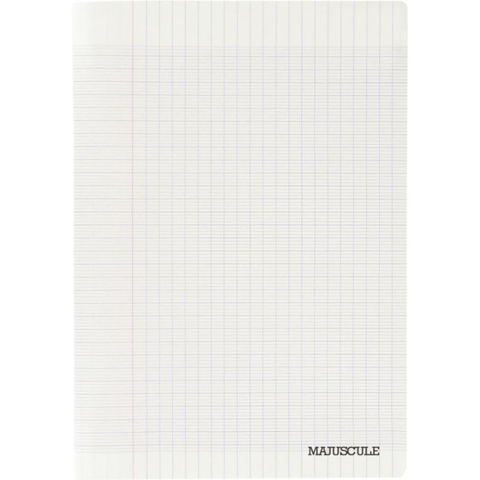 Piqûre 192 pages MAJUSCULE, format 17x22 cm, papier blanc 70g, réglure seyès, couverture en polypropylène incolore