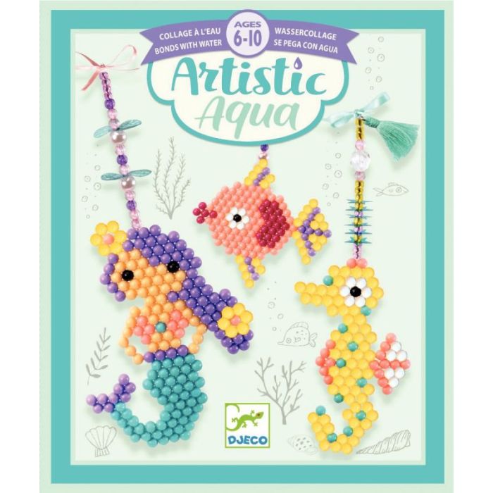 Contient 1 plaque support de travail, 1 vaporisateur, 1 assortiment de billes plastique qui se collent à l'eau (8 couleurs), perles et breloques, fil élastique transparent, ruban de satin, 1 aiguille, 1 passe fil, 1 livret pas à pas en couleurs