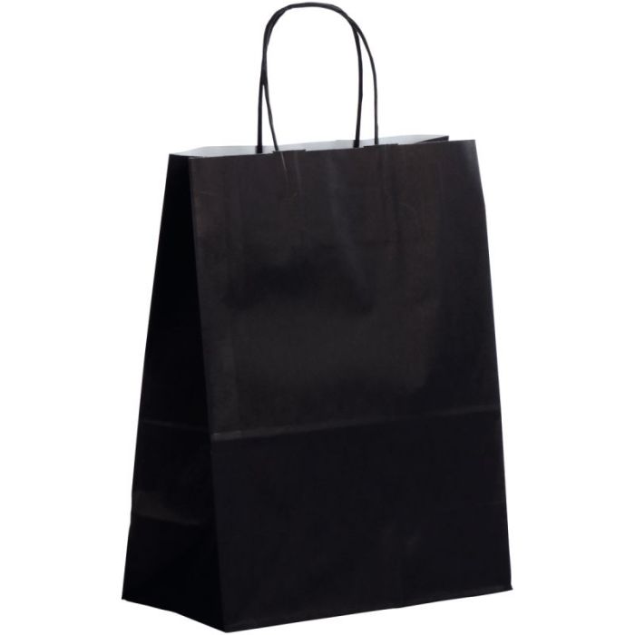 Paquet de 50 sacs kraft noir 23x+12x30cm poignées torsadées