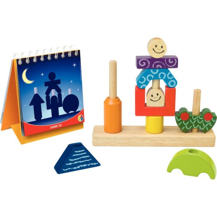 Contenu de la boîte : 1 socle en bois, 10 pièces en bois, 1 livret /chevalet contenant 48 défis et toutes les solutions