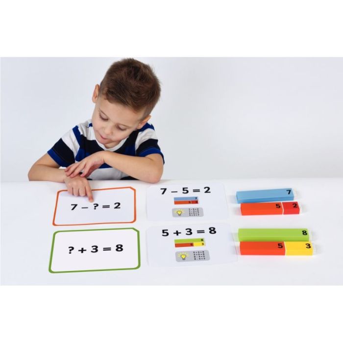 En associant les éléments et les fiches d’activités, les enfants vont apprendre à compter, à comparer, à additionner, et à soustraire