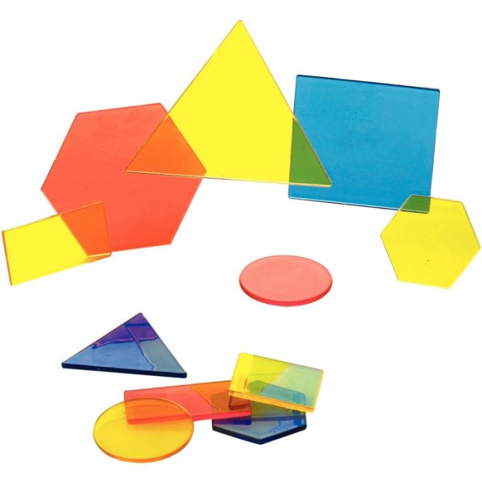 Contenu du baril : 60 formes géométriques translucides de 3 couleurs (Bleu, Rouge et Jaune)