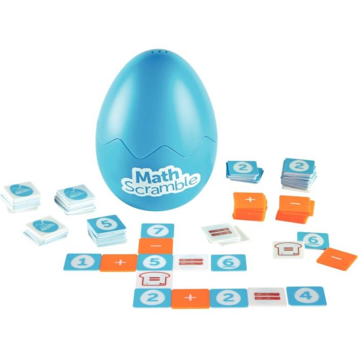 Contenu du Jeu : 1 support en PVC représentant un œuf (Hauteur 14cm), 45 jetons de chiffres de 1 à 9, 44 d’opérations et 1 règle du Jeu
