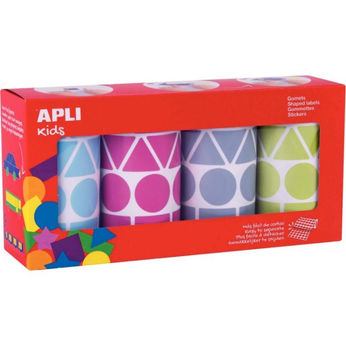 Lot de 4 rouleaux gommettes géométriques couleur fun
