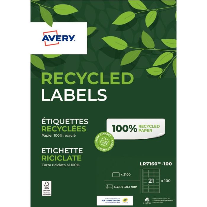 Boîte de 2100 étiquettes recyclées 63,5 x 38,1mm