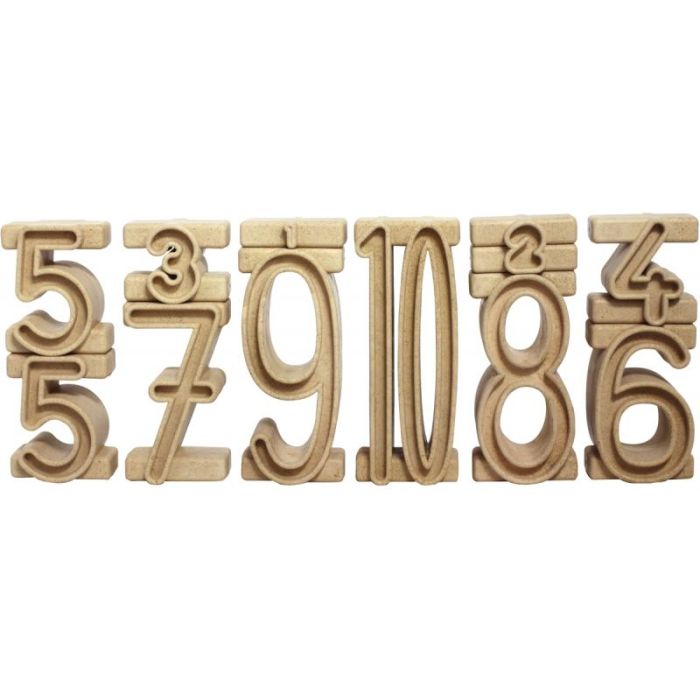 Contenu de la boîte : 12 x 1, 7 x 2, 4 x 3, 4 x 4, 2 x 5, 1 x 6, 1 x 7, 1 x 8, 1 x 9, 1 x 10 permet d'empiler 10 x la valeur 10 avec différents nombres à empiler.