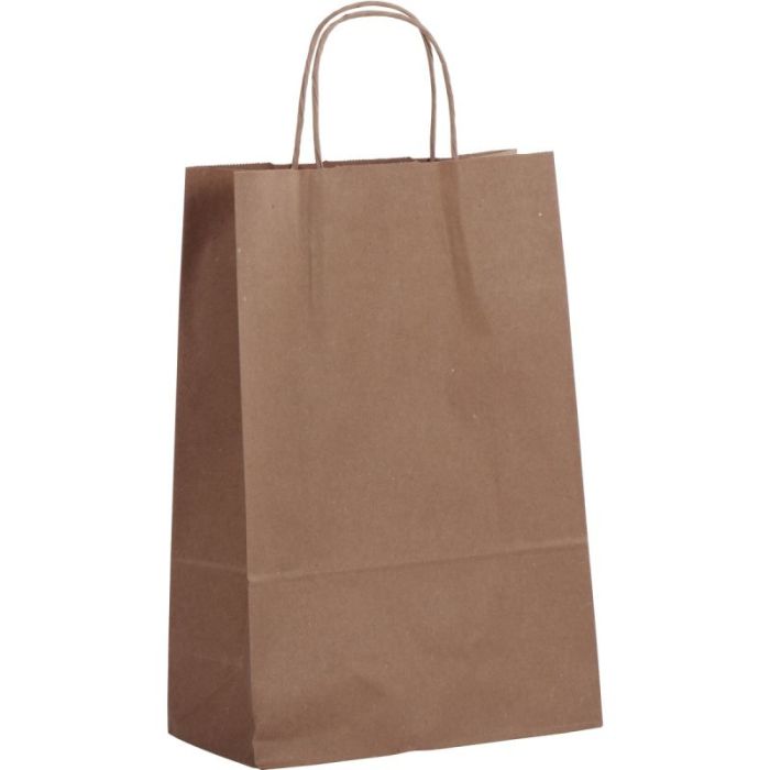 Paquet de 50 sacs kraft brun 32+12x44cm poignées torsadées